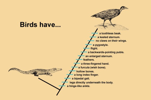 The remaining avian traits listed above evolved within Avialae during the Mesozoic.