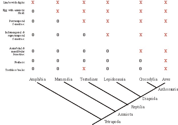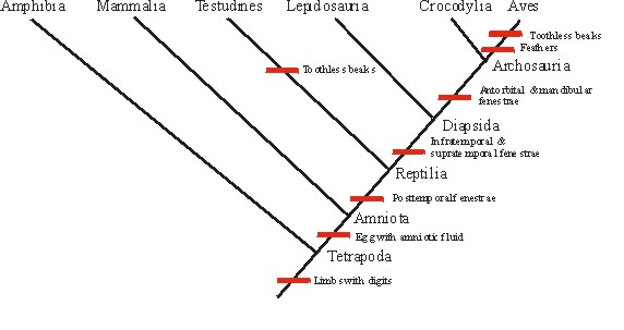 arrangement of shared derived characters. For example, below is a cladogram of living terrestrial