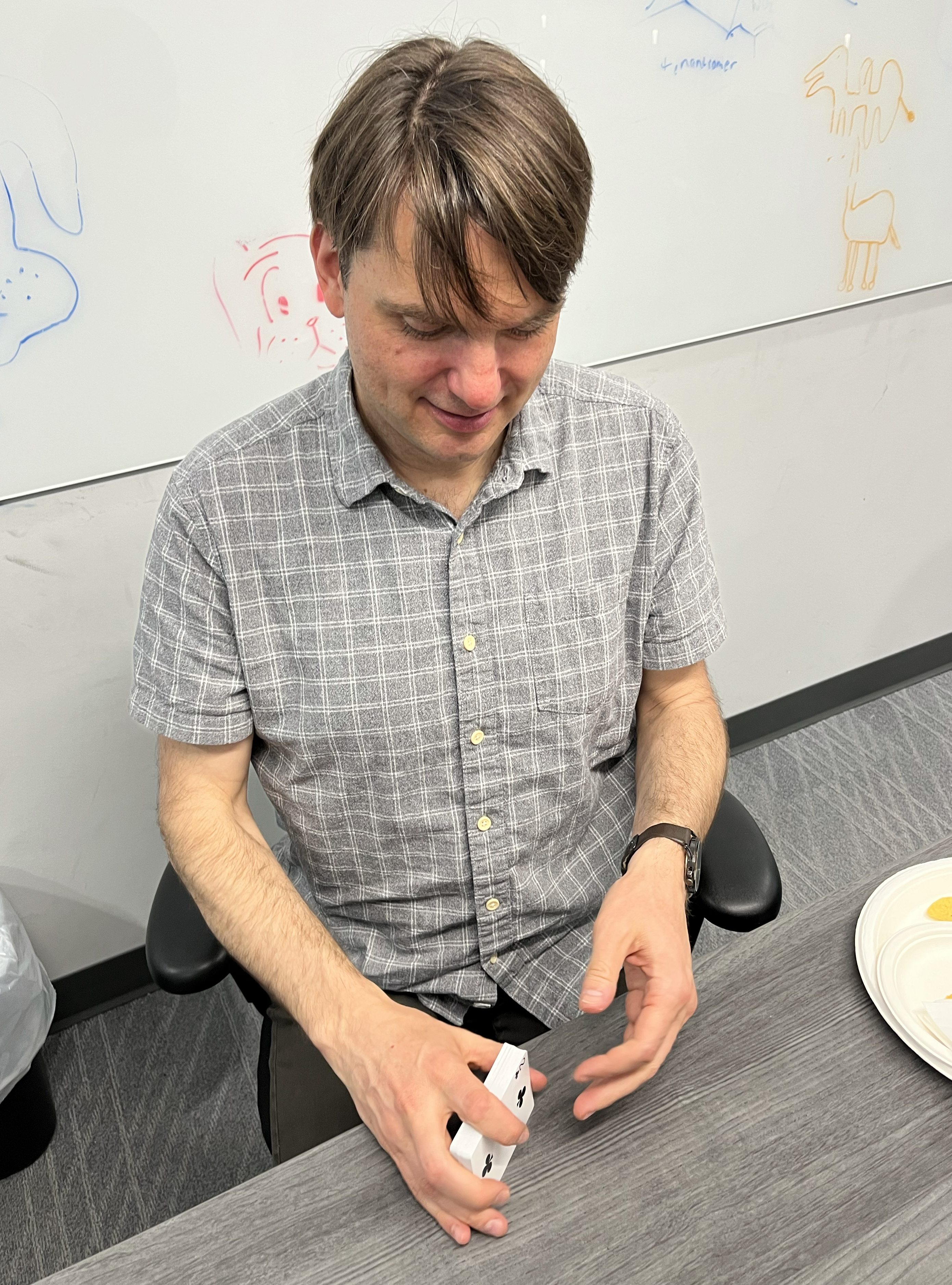 Dr. Hall shuffles at game night!