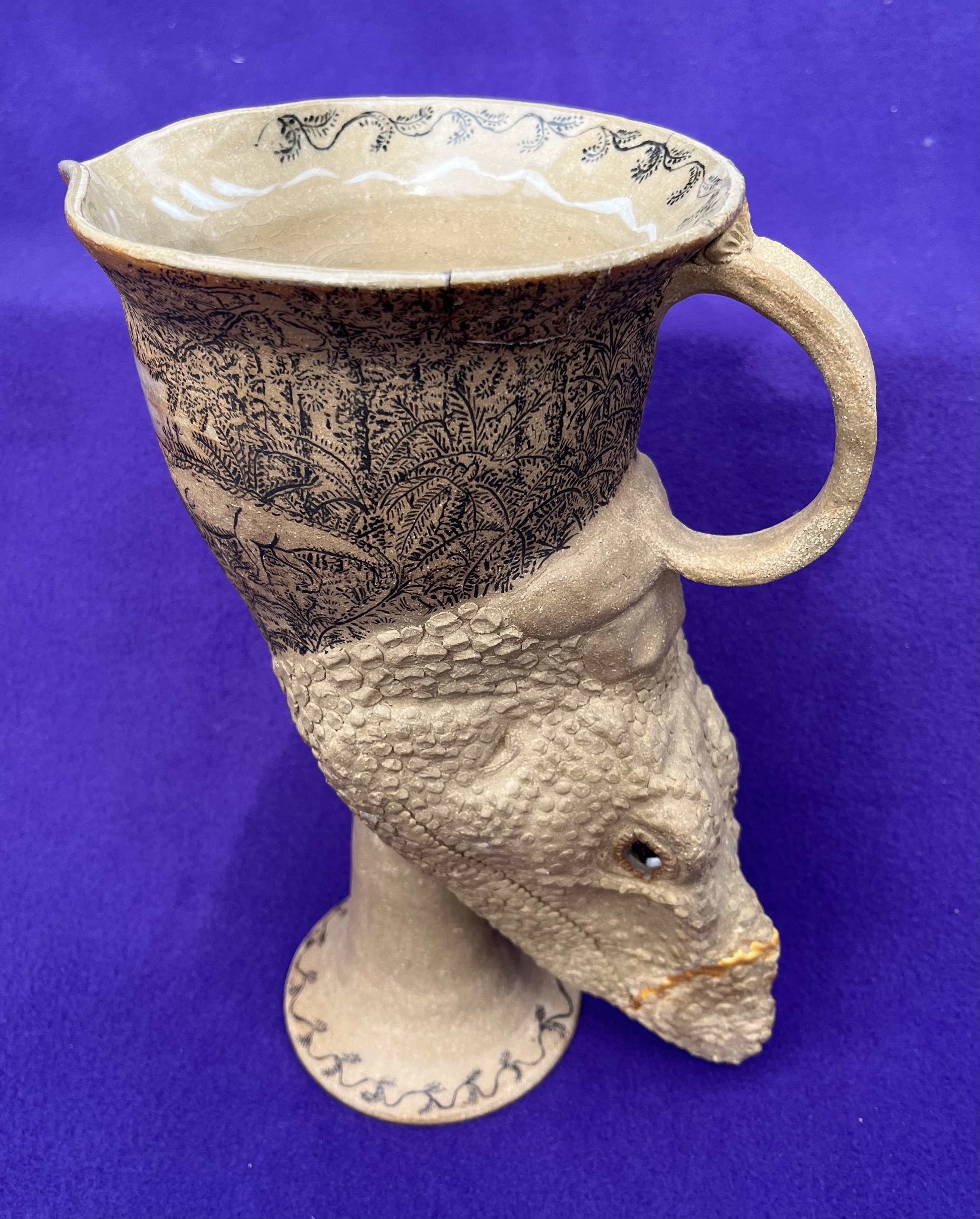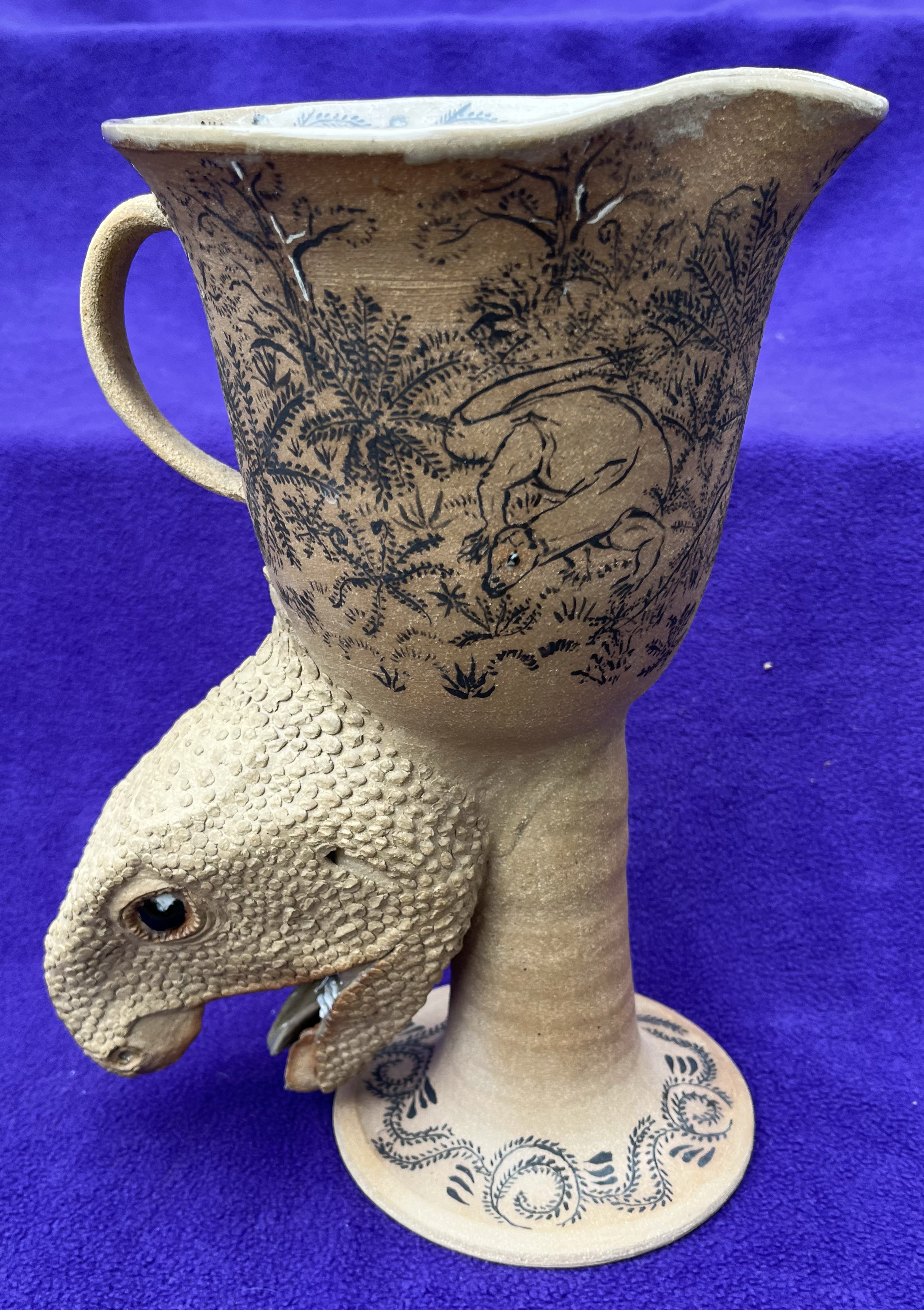 pitcher. Open mouth shows the animal's remarkable teeth.