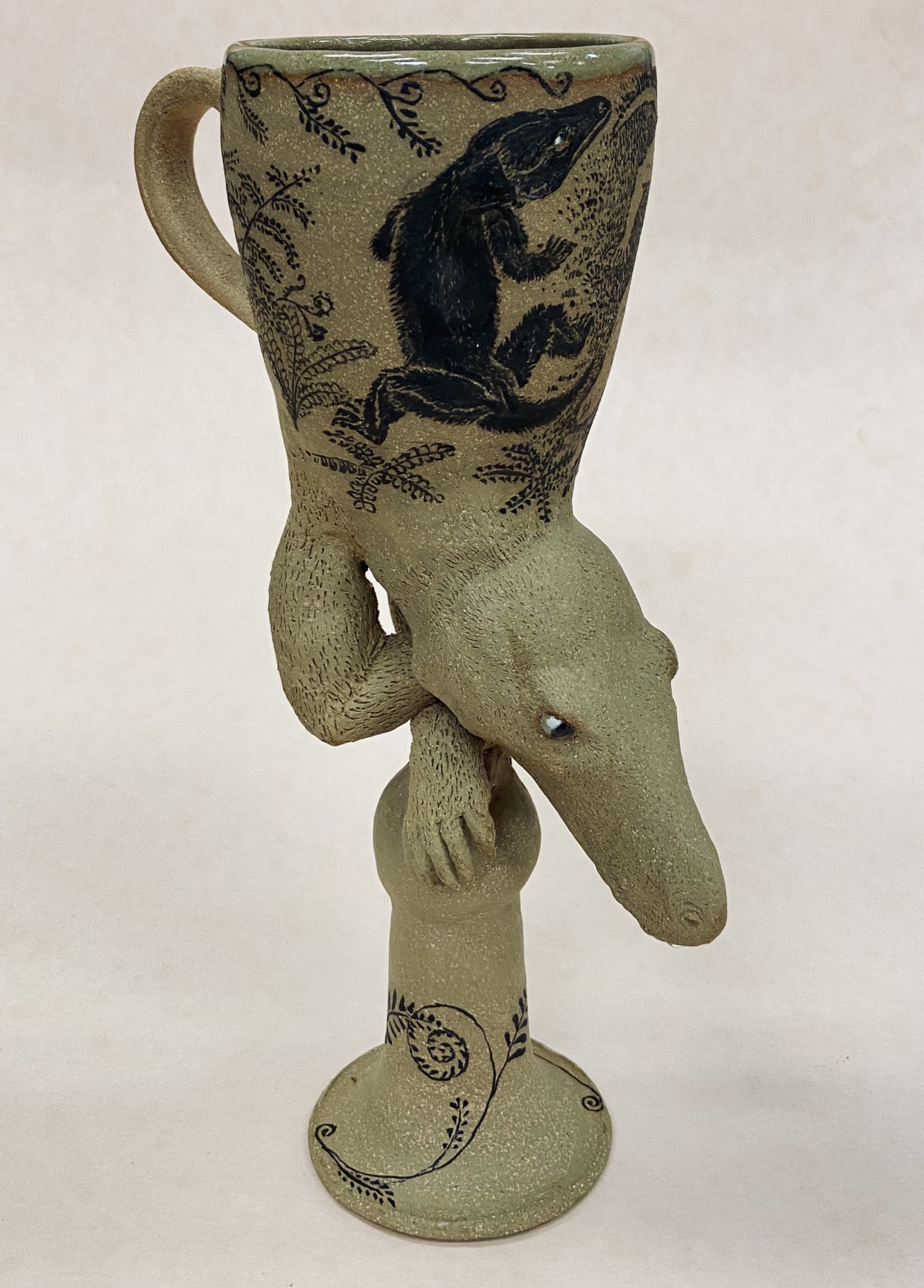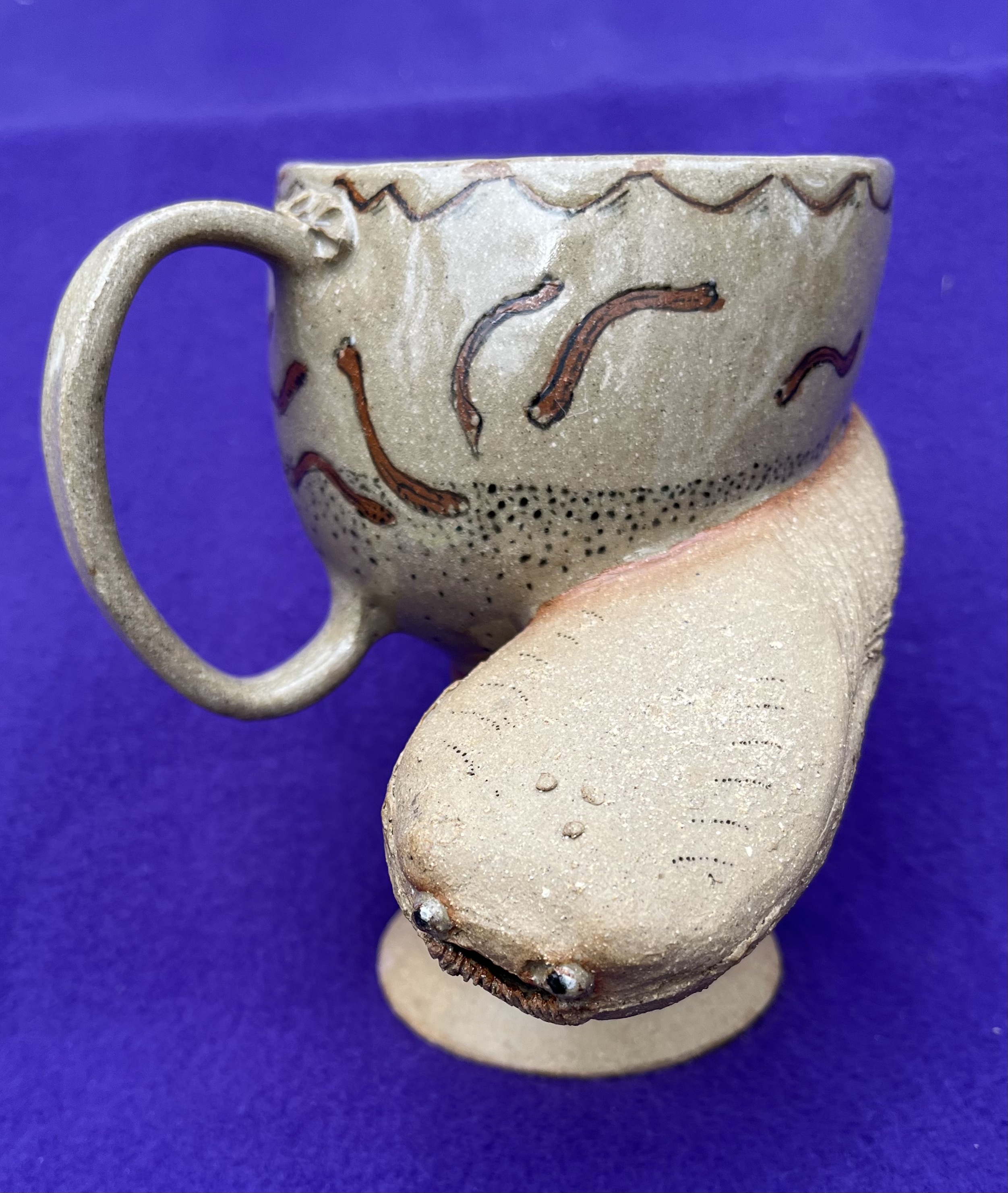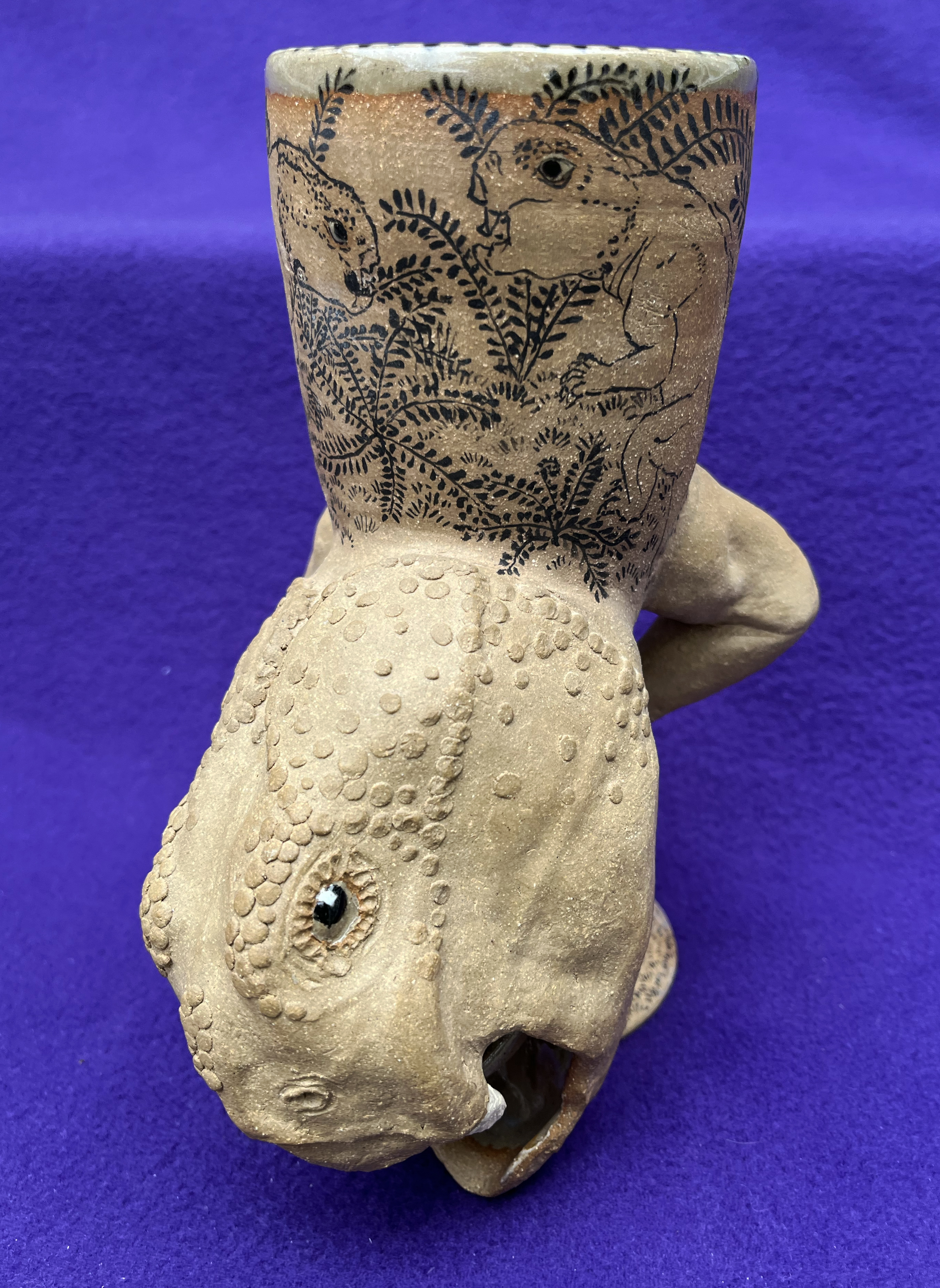 I've graduated form rhytons to vessels that can safely be put down before they are drained.