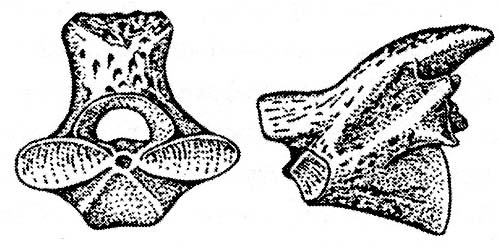 - First vertebra is enlarged, but otherwise no specialization of the vertebral column, such as zygapophyses.
