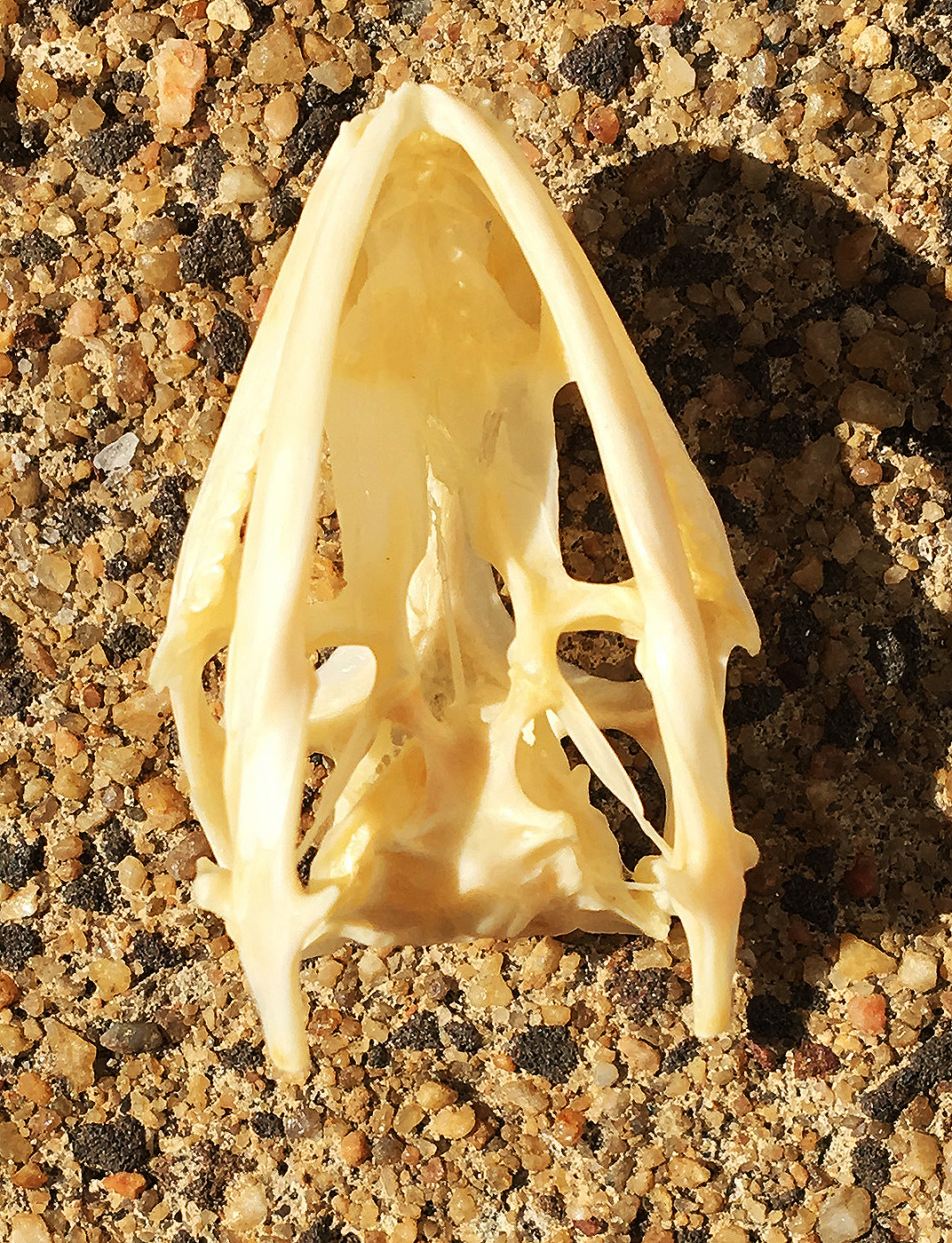 The images at right show dorsal and ventral views of the skull with jaws removed, and standard abbreviations of visible elements.