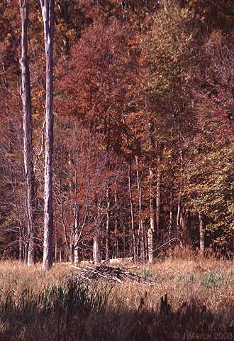Beaver lodge in autumn marsh and forestLocation: Huntley Meadows - Fairfax County, VA Year: 2003 Merckslides catalogue number: 06-17836 Comments: |