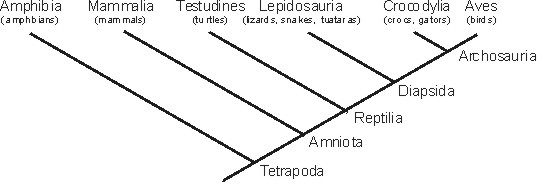 Here is another, more comprehensive, cladogram of living terrestrial vertebrates: