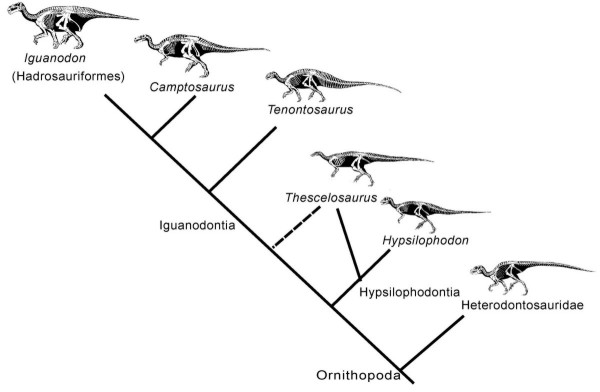 The more advanced ornithopods are divided into the (probably paraphyletic) Hypsilophodontia